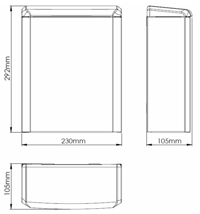Abmessungen: 292 x 230 x 105 mm