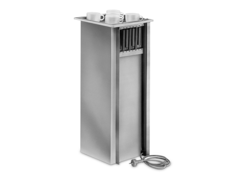 Einbau-Tellerwärmer, für rechteckige Teller, Kaffee- oder Suppentassen, mit separater Schaltblende mit einstellbarem Thermostat, geschlossene Stapelröhre mit Innenverkleidung