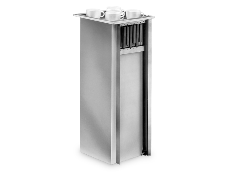 Einbau-Tellerstapler unbeheizt, für rechteckige Teller, Kaffee- oder Suppentassen, geschlossene Stapelröhre mit Innenverkleidung