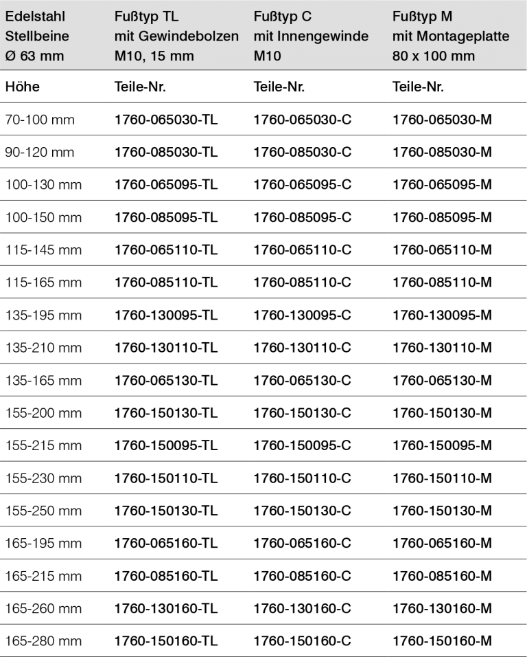 Typ TL: mit Gewindebolzen M10, 15 mm