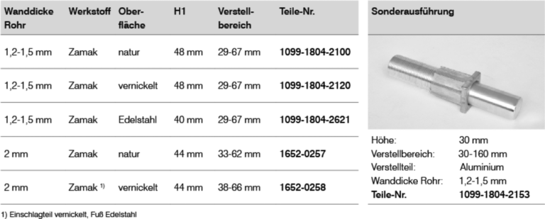 Werkstoff: Zinkdruckguss/Zamak oder Edelstahl