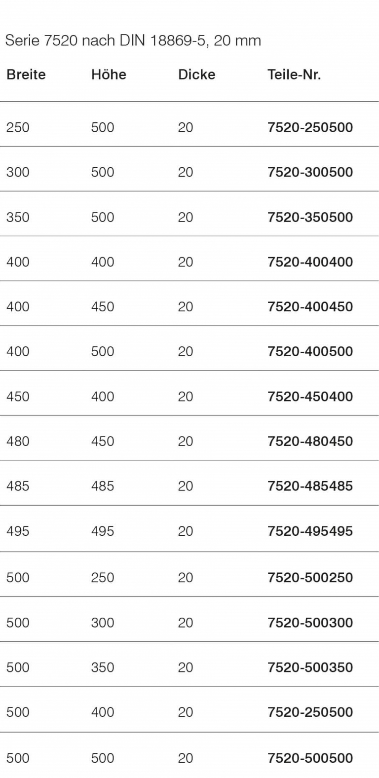 Produktabmessungen (HxBxT) 50cm x 50 cm x 2 cm (Art.Nr. 7520-500500)