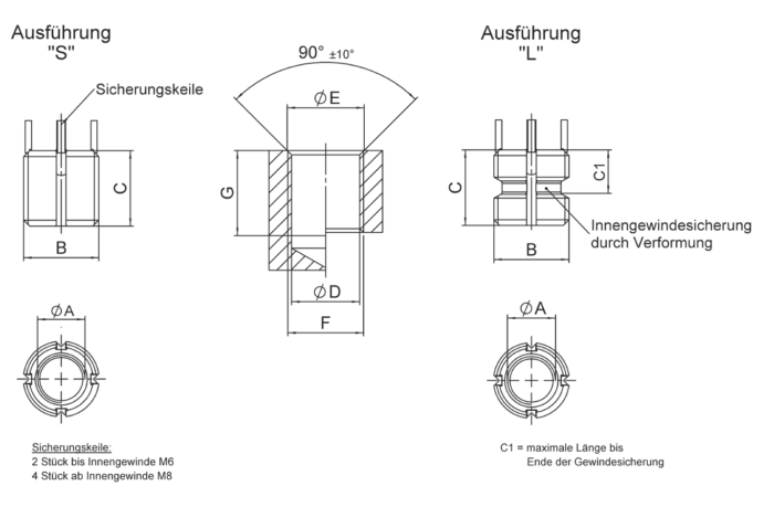 KEENSERTS® sind nach der Montage durch ihre Sicherungskeile, gefertigt aus rostfreiem Stahl nach AISI 302, verdreh- und vibrationsgesichert. KEENSERTS® werden, abhängig von der Gewindegröße, mit 2 oder 4 vormontierten Sicherungskeilen geliefert. Diese werden während der Montage in den Grundwerkstoff gedrückt und ergeben eine formschlüssige Verbindung. Im Bereich der Sicherungskeile kann das Außengewinde nicht mit einem Gewindelehrring nach DIN geprüft werden.