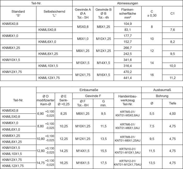 KEENSERTS® Serie KNM (Normalausführung metrisch) und Handeinbauwerkzeug