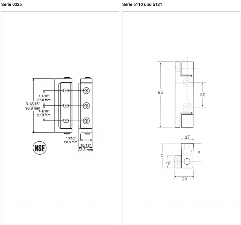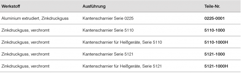 – Kantenscharnier 5110, ab 22 mm Türstärke, inkl. Dichtung