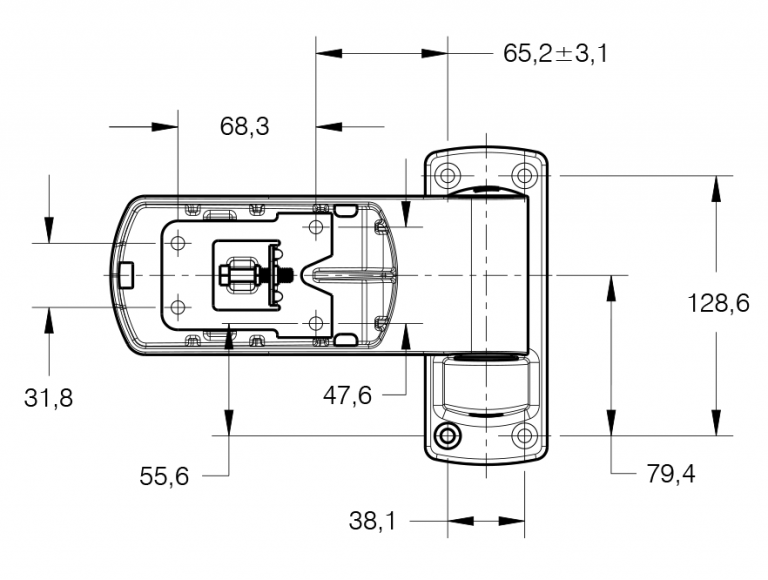 – Flansch mit abnehmbarer Kappe, um ein einfaches Ausheben der Tür ohne Demontage des Scharniers zu ermöglichen