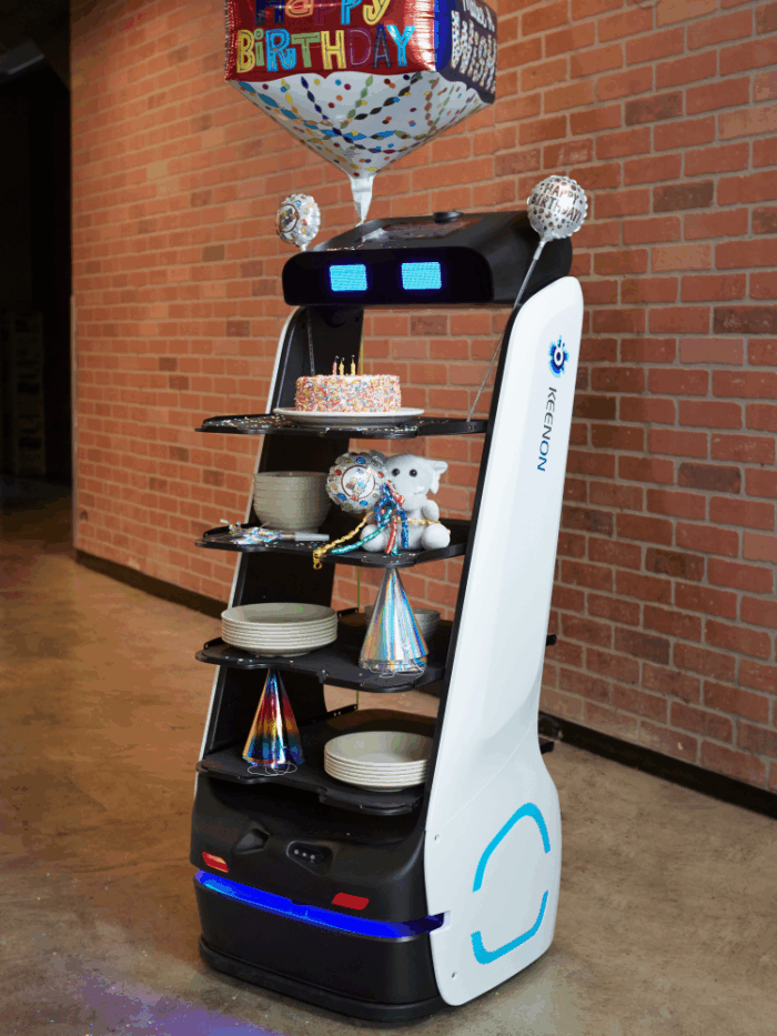 Das Modell Dinerbot T5 ist besonders gut für größere Mengen geeignet und bietet Platz für bis zu 40 kg Zuladung auf 4 Ablageflächen.